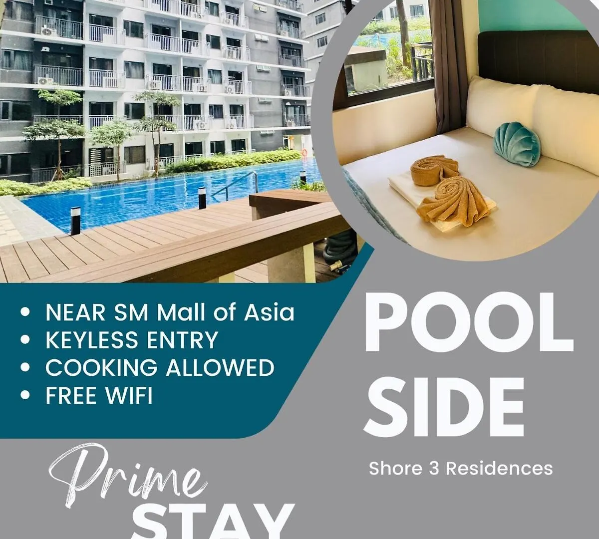 Shore 3 Residences Poolside Room 245 By Prime Stay Moa features an equipped kitchen, perfect for guests wishing to cook their own meals. The apartment offers access to Ninoy Aquino International airport, located within 15 minutes by car.